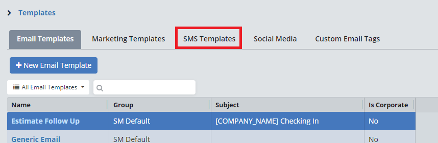 Click on the name of the template you want to edit or click "+SMS Template" to create a new template