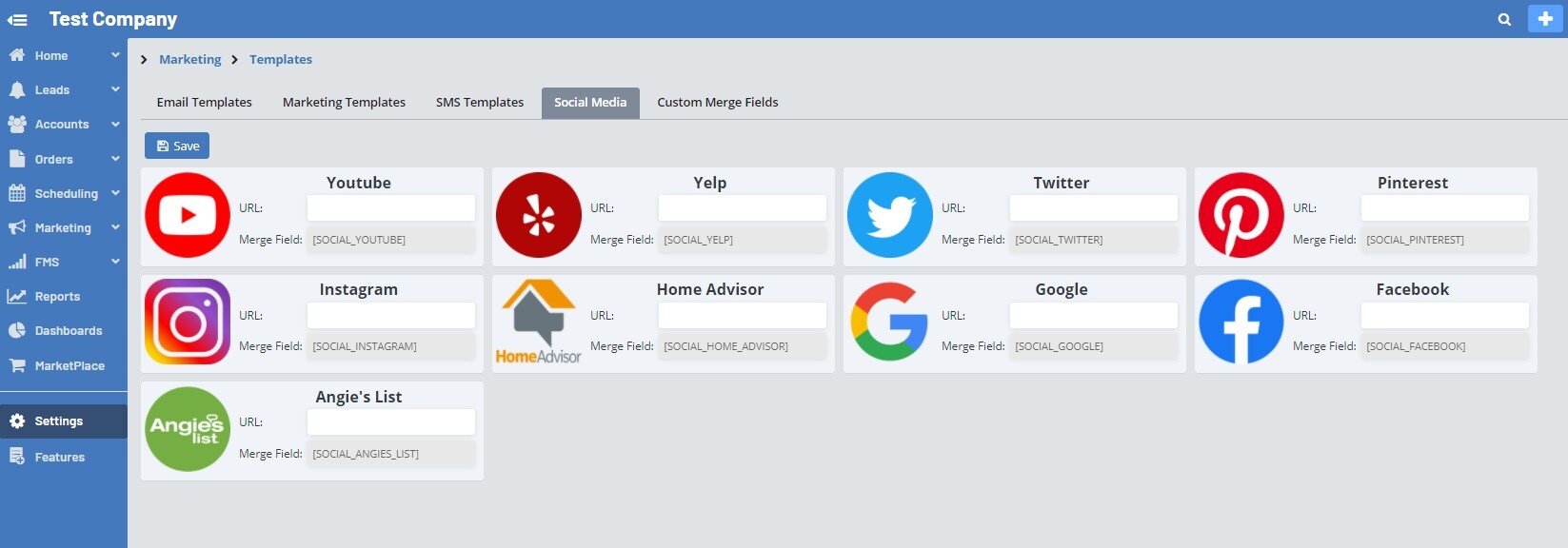 These Merge Fields insert links to your Social Media, for more information on how to set this up click here.