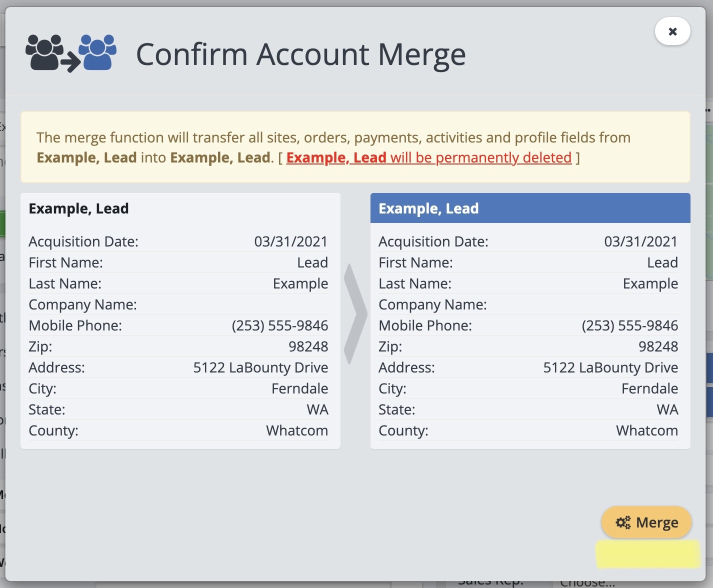 The system will then ask you to confirm the merge. Select the “Merge” button if all the information looks correct.