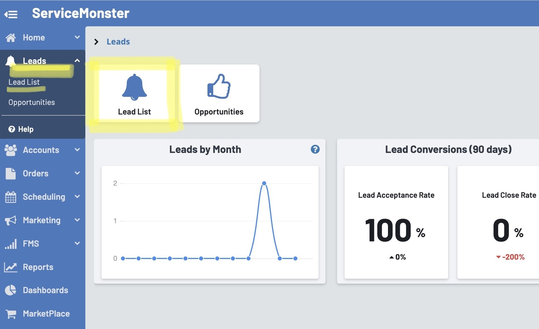 From "Leads" in the Main Menu, select the "Lead List" icon.