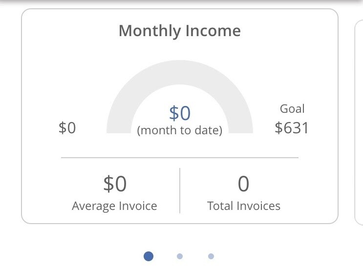 Monthly Income: Here you can view your income for the month compared to a goal created from your monthly averages (year-over-year comparison + 5%). You can also see the average invoice total and the number to total invoices for the month.