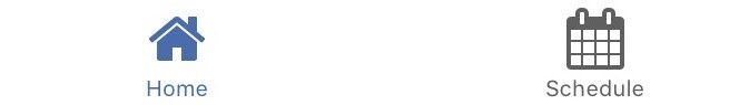 Home and Schedule: At the bottom of the app you can switch between viewing the home screen or the schedule. You can learn more about the schedule on the mobile app by clicking here.