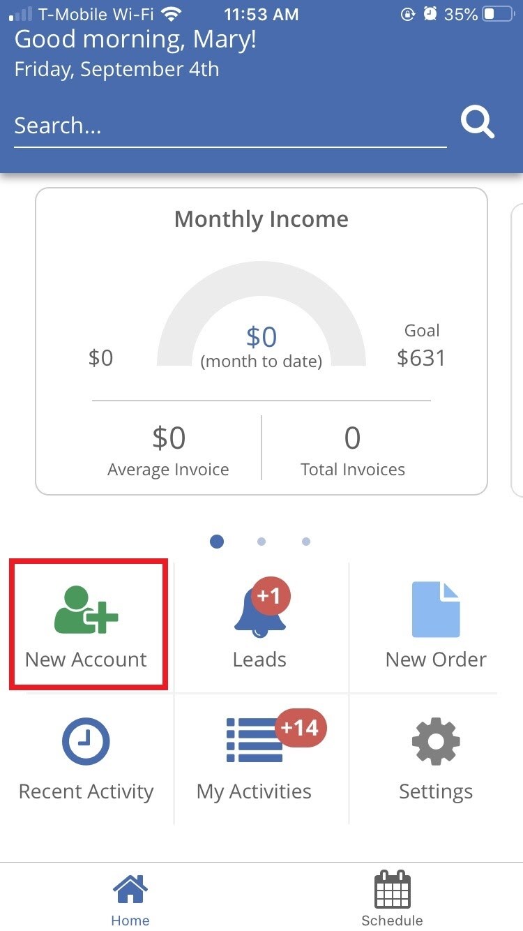 You can quickly create a new account on the mobile app from both the home page. On the home page, click “New Account”.