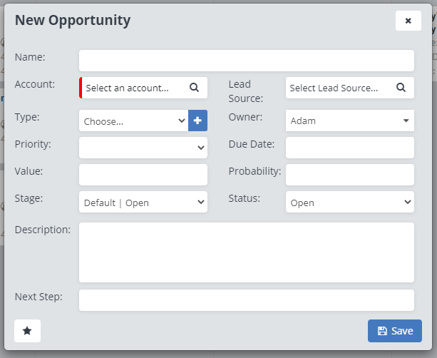 Account: Select the account of the client this opportunity is for. For more information on creating accounts, click here!