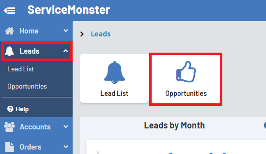 To open opportunities and Kanban, click on Leads in the left-hand side menu and select “Opportunities”.