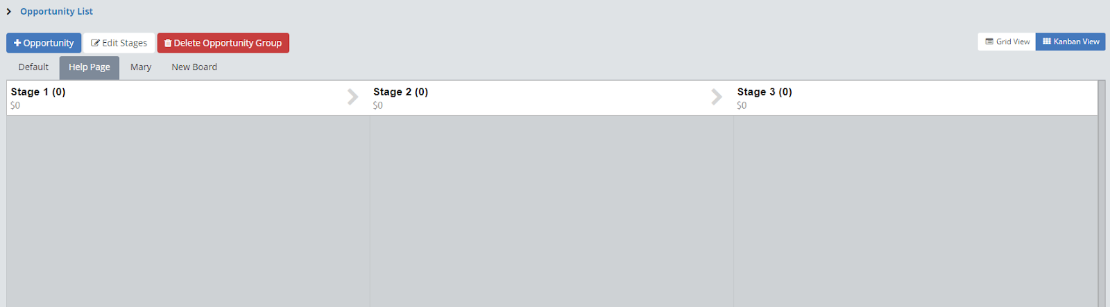 The group, or board, will now be created! You can start adding in stages, or steps, by clicking on the “New Stage +” button.