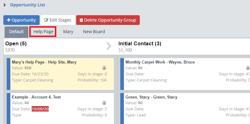 While you will start with a “Default” sales board that you can choose to utilize if you wish, but you can also create boards to represent a number of other things. For example, you can make a personal board for each of your sales team members, a board to keep track of multi-step services, or many other options.