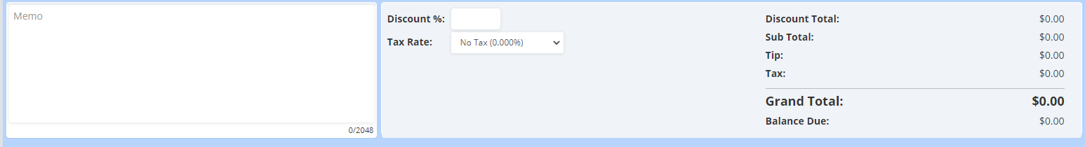 Memo: This is where you can add in notes that will be visible on your Estimates, Work Orders, and Invoices. Clients will be able to see these notes.