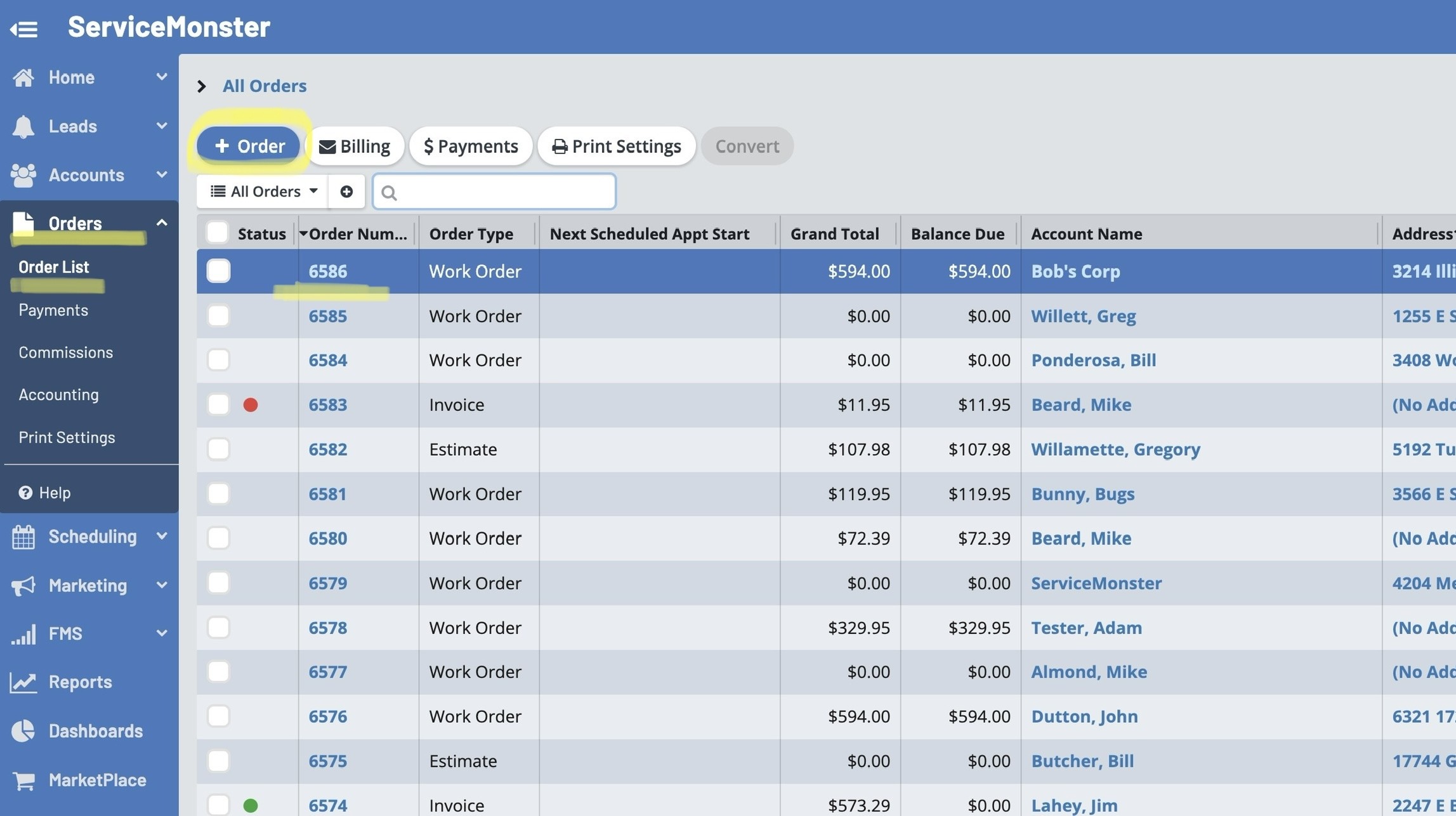 Last Tech(s): If the order is scheduled, the techs assigned to this appointment will show up here.