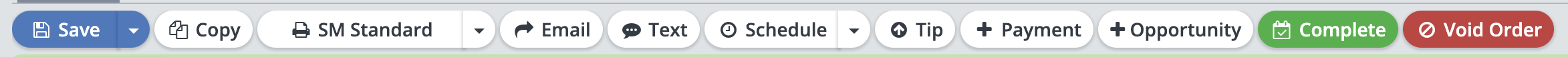 Void Order: Open up a window to either void the order and cancel its pending jobs, or delete the order and all its jobs. If the button appears gray in color, it means that a payment was applied, and you can no longer void/delete the order.