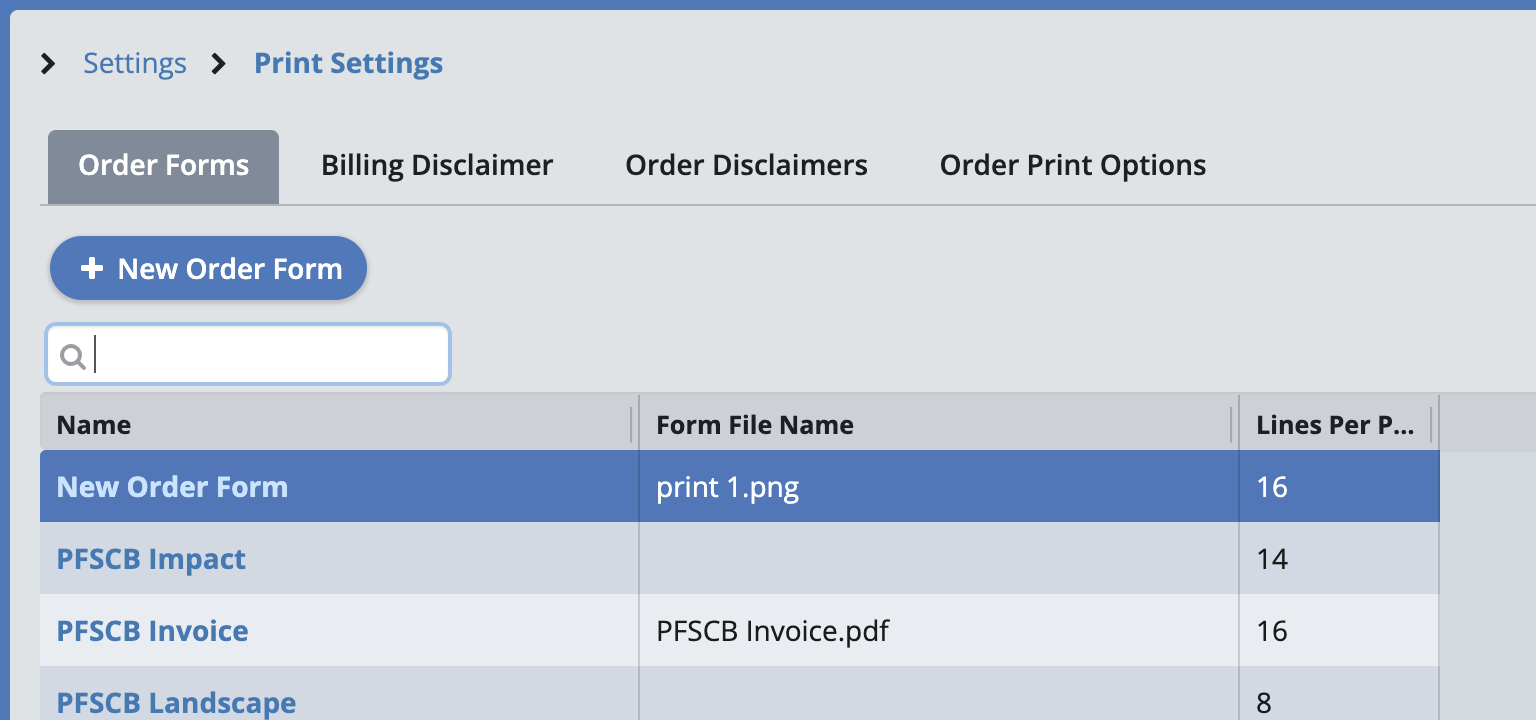 You can view your Order Forms from the “Order Forms” tab. To see what a form looks like, or to download said form, simply click on its name.