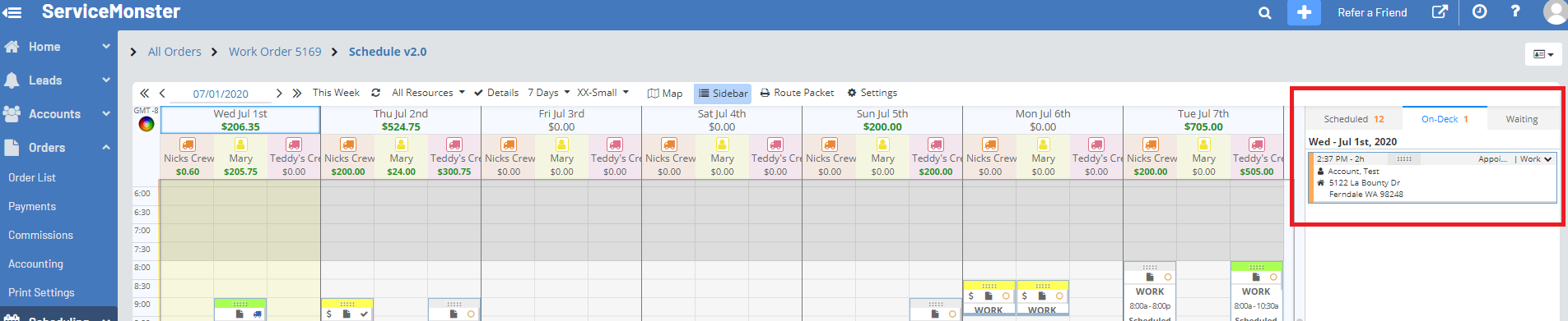 This will take you to the schedule, with your appointment showing up in the "On-Deck" box.