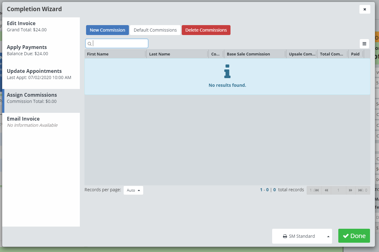 Here you can view what commissions are currently assigned, or assign commissions to employees. To learn how to create a commission rate click here.