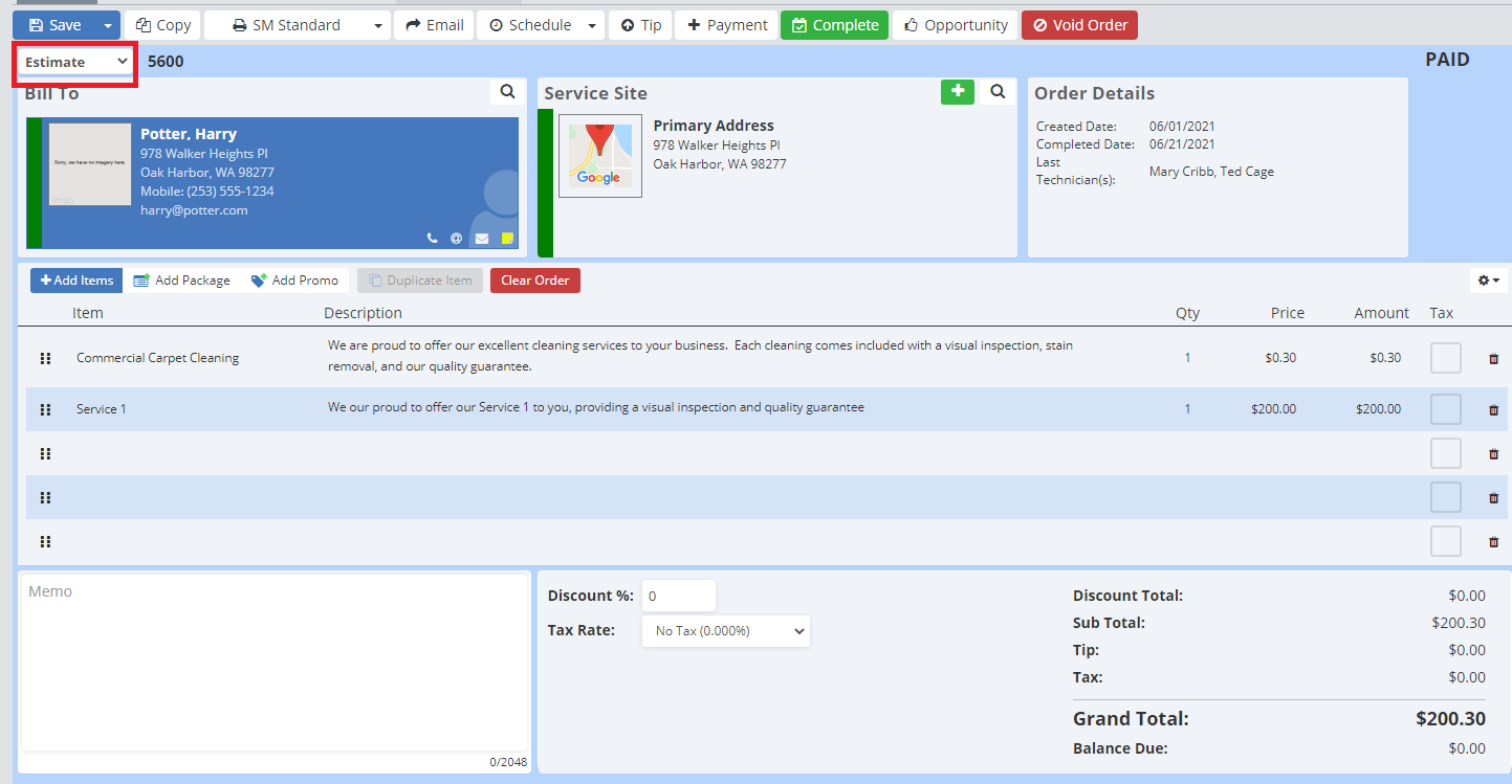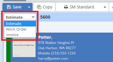The process of changing your estimate into a work order, or work order into an invoice is simple! Open up your order in ServiceMonster.