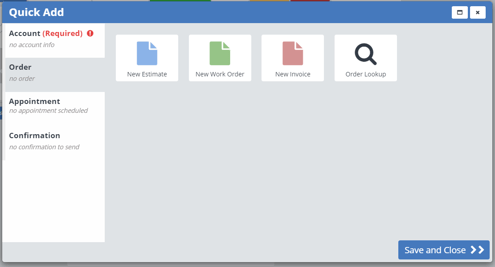 Save and Close: At this stage, if you click on the Save and Close button it will create your new order, and if you didn't select a preexisting account it will also create a new account for you.