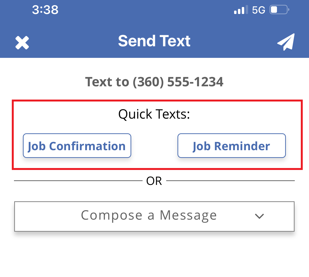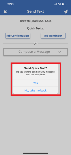 Using the Quick Text feature will allow you to select up to two different templates that are available as a one press action on the mobile app to send to clients.