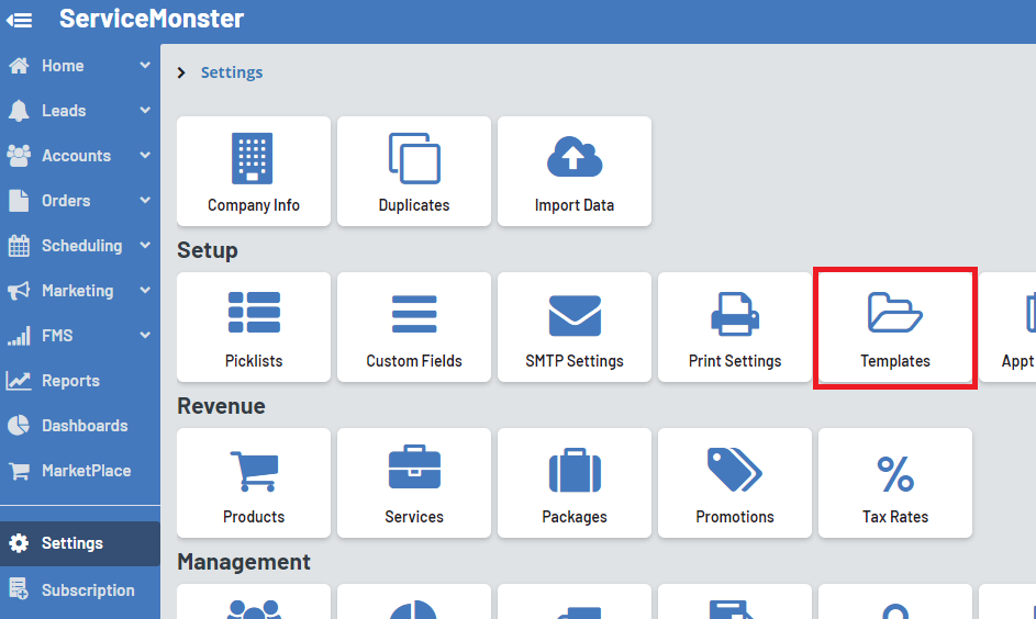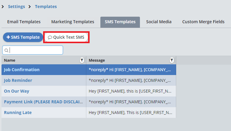 Click on SMS to view your SMS templates. You may need to edit or create an SMS template to use for the Quick Text, if that is the case, click here to learn more about creating or editing SMS templates.