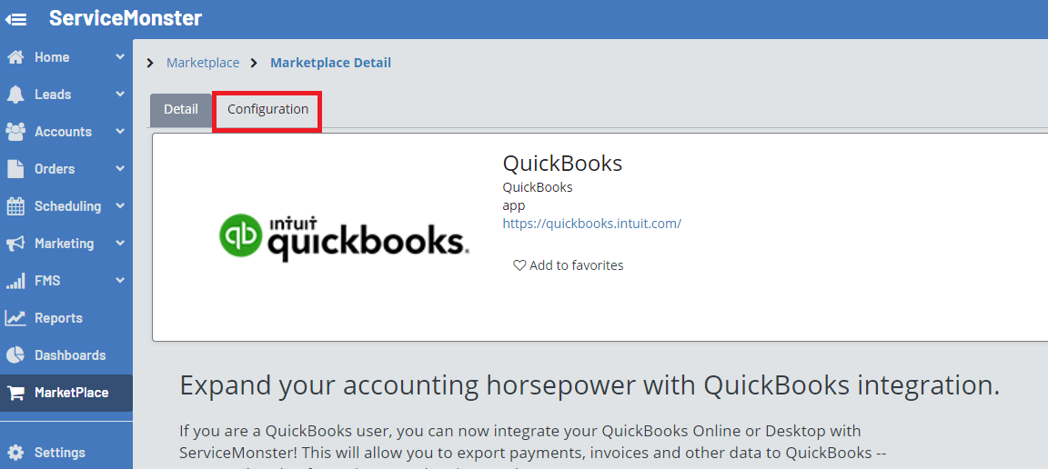 Go to the Marketplace tab and select QuickBooks