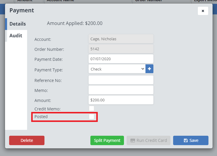 Check the “Posted” box and click “Save”.