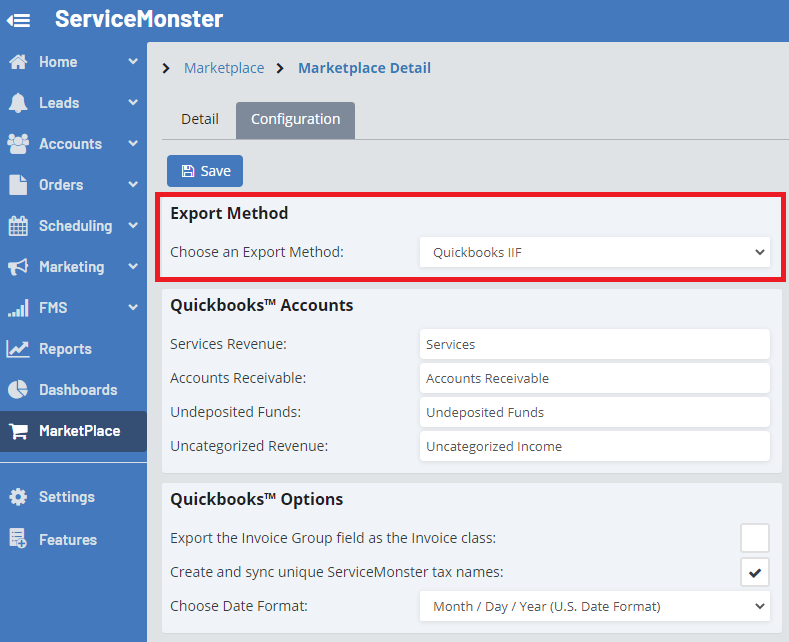 This creates a .IIF export file that contains your non-posted ServiceMonster invoices and payments that can be downloaded and imported into QuickBooks using QuickBooks.IIF file importer.