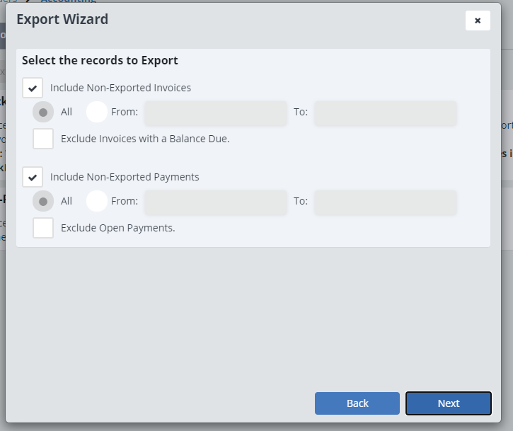 In the subtabs “Non-Posted Invoices” and “Non-Posted Payments”, you can view what invoices and payments are about to be sent over to QuickBooks.