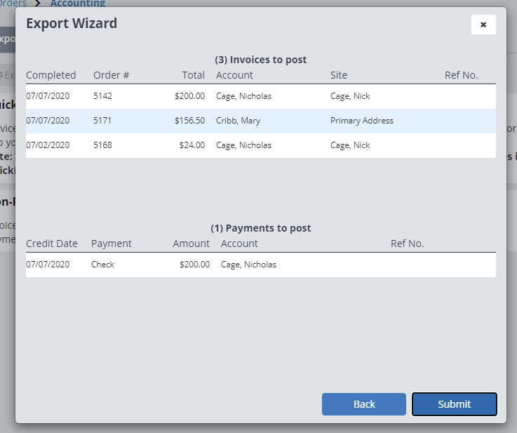 Here you can see a list of your Invoices and Payments, if that all looks good, click “Submit”