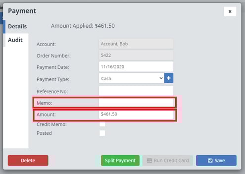 This will open up the payment window. Here Change the amount of the payment to reflect the amount due on the invoice, in the memo field add in a note that explains the original amount of the payment and the amount refunded. You can also enter the date the refund was issued and the method of the refund.