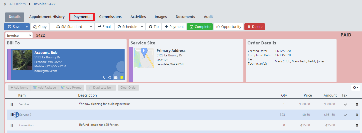You will next was to update the payment information on the order. Go to the “Payments” tab on the order page.