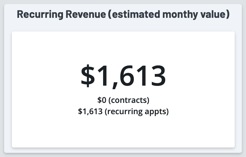 This is an estimated total that is calculated by your total value in current contracts and adding the value of the next year's worth of recurring appointment (assuming they all are completed).