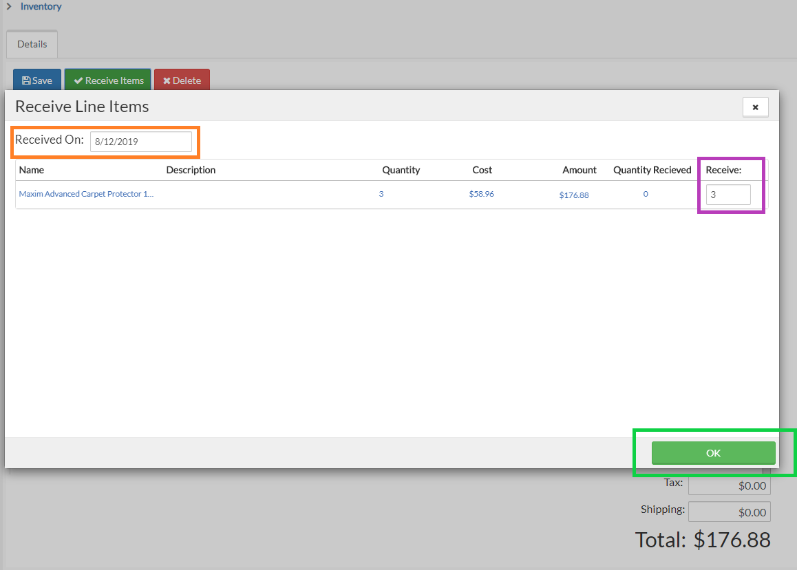 Re-ordering inventory is a simple process within ServiceMonster by creating PURCHASE ORDERS. If you have linked your inventory items to your products and services then this will happen automatically as you use the inventory items during your workflow. You can also manually create PURCHASE ORDERS when you need to re-supply.