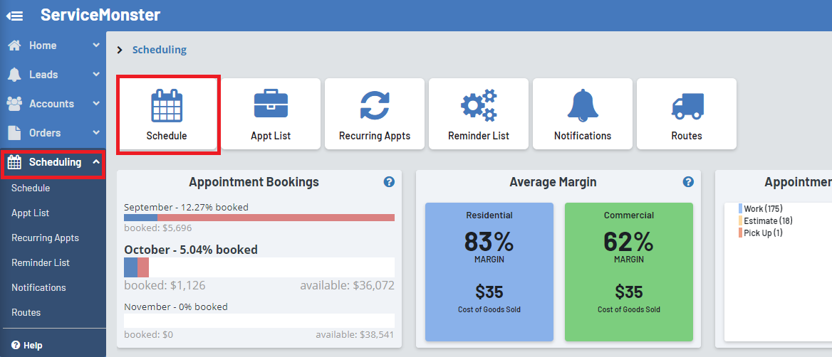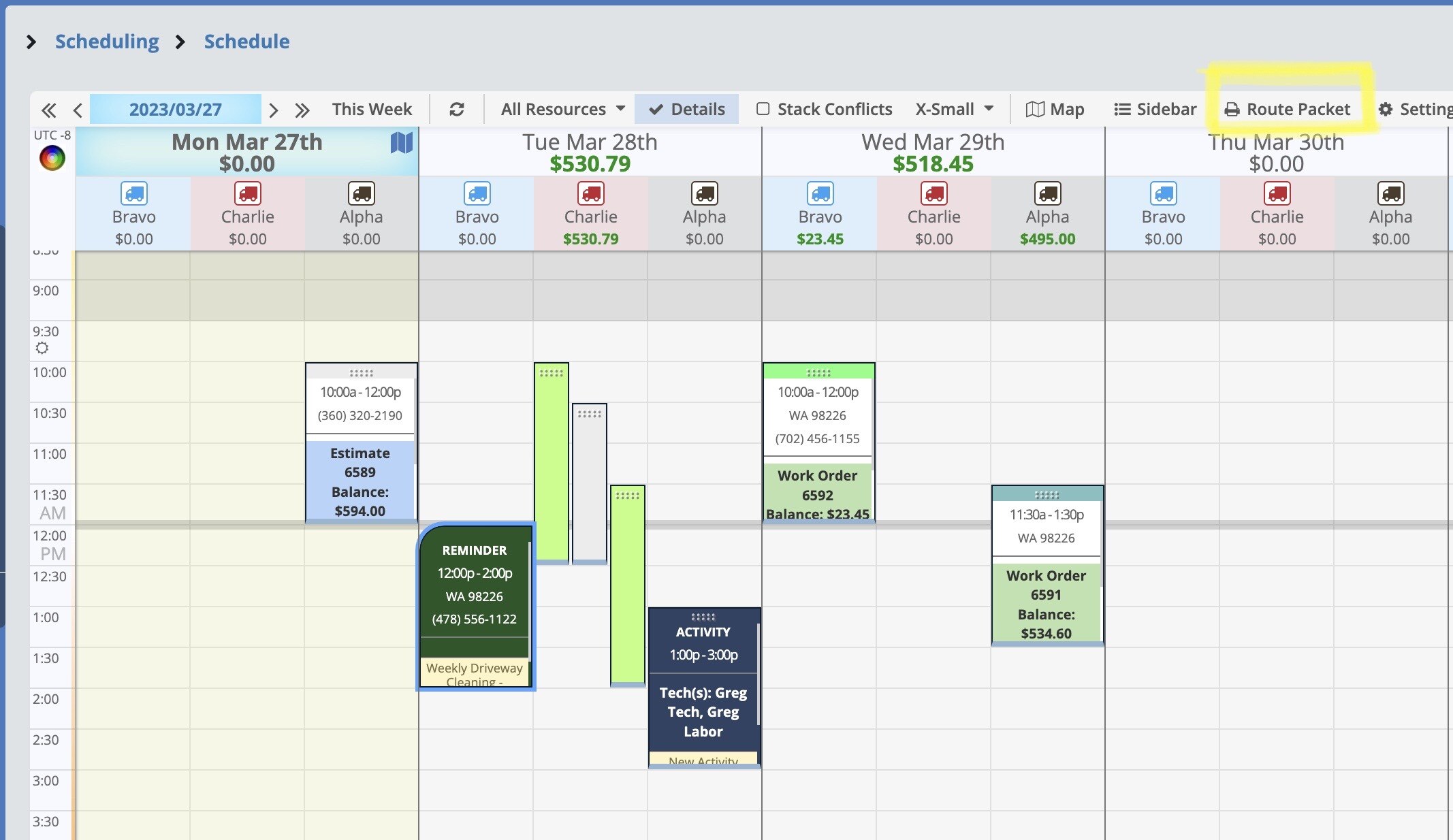 To create a Route Packet, open up your Schedule by clicking on “Scheduling” in the Main Menu and then select “Schedule”.