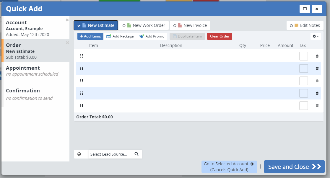 Whether you are creating a new order, or adding in appointments on a already made order, the Quick Add is an easy place to do that.