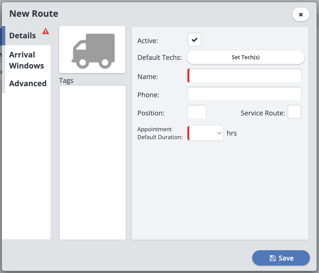 Phone: (Optional) A phone number for this route so that your office staff can easily get in touch with the technicians if needed.