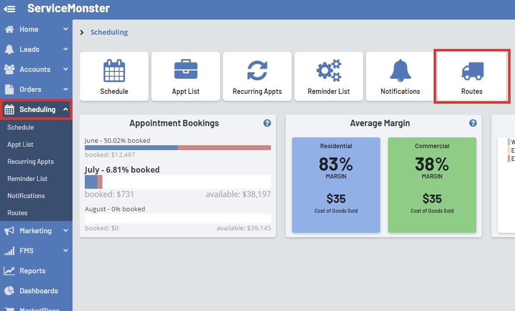 Routes are an important part of your schedule. They allow you to organize which tech, team, or vehicle, is heading to each appointment.