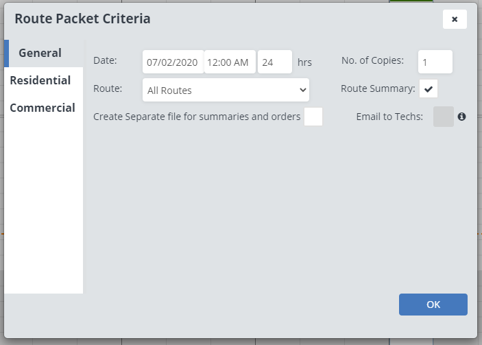 Route Packet: Clicking this button opens up the Route Packet Criteria where you can customize and create your route packets.