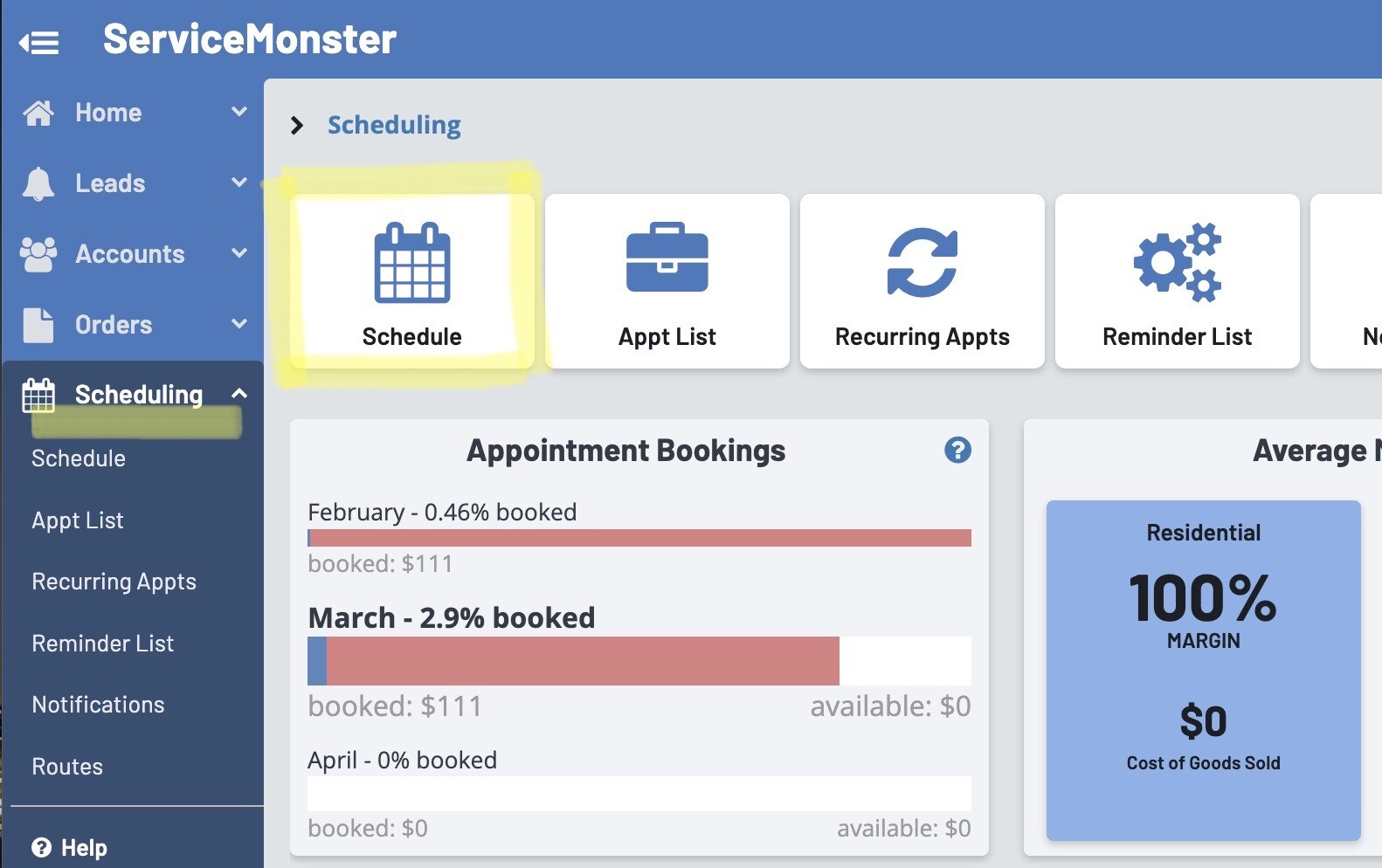 This is your schedule. You will be able to see your routes, as well as any appointments you have created.