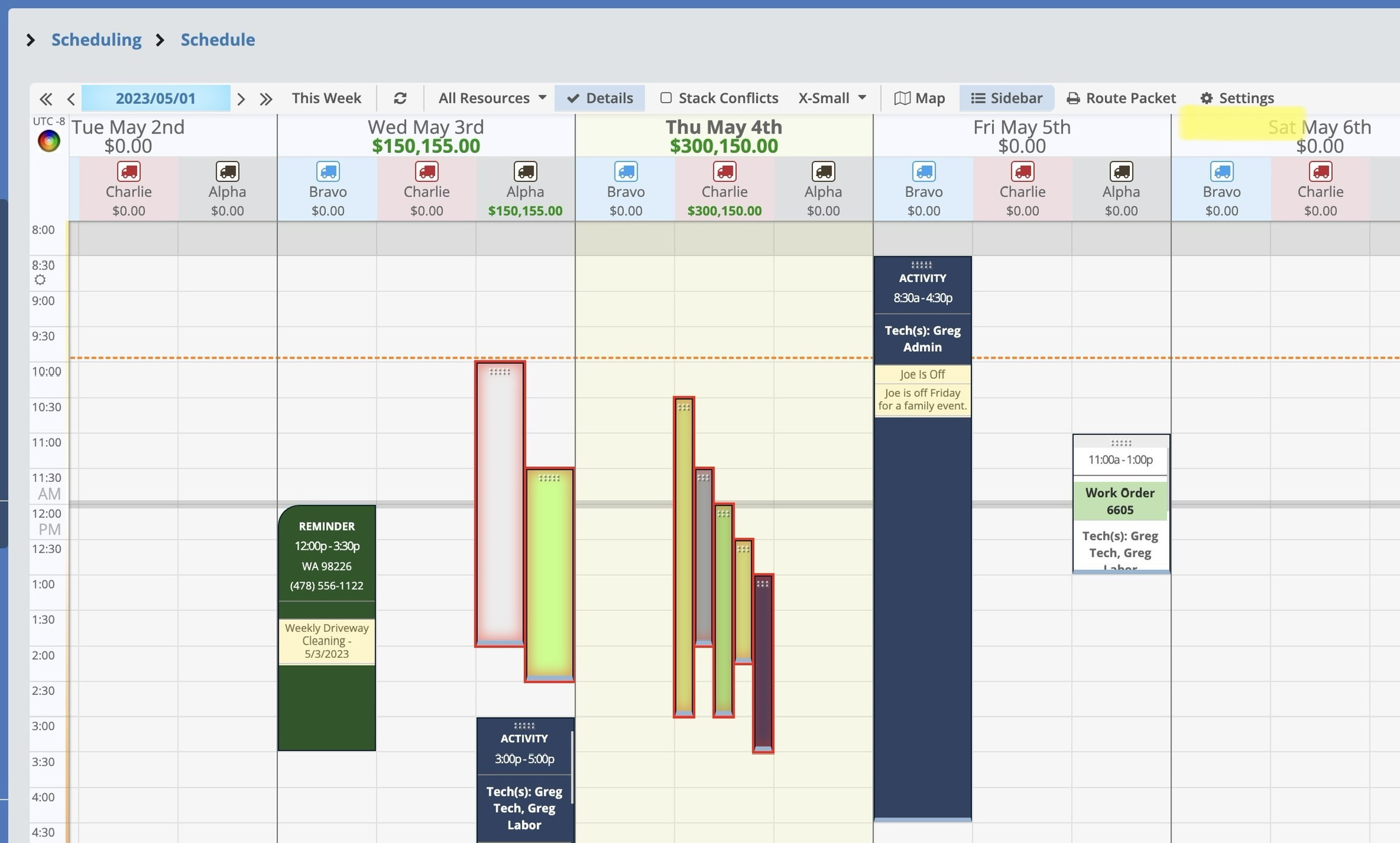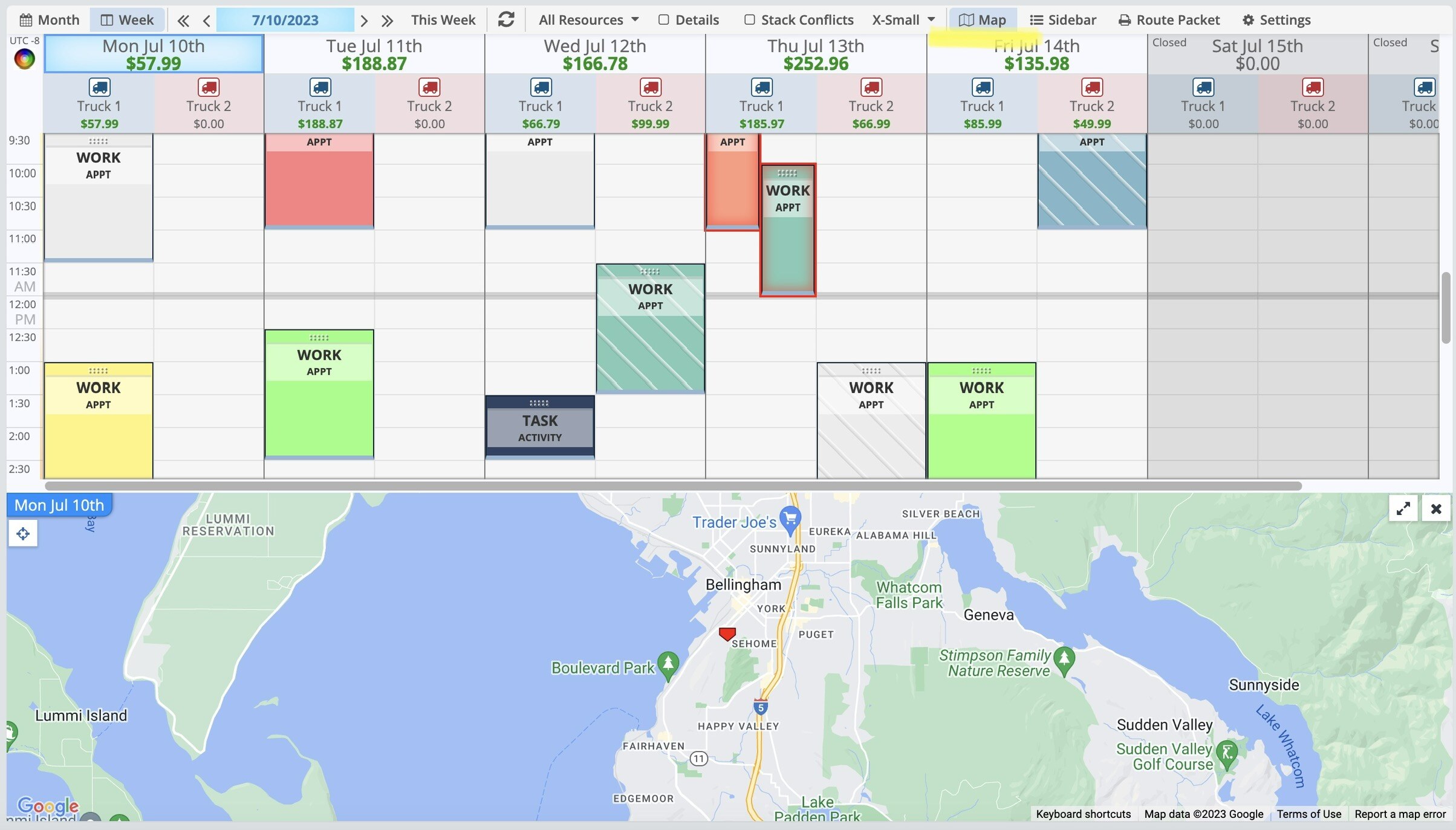 Stack Conflicts: Here you can choose to stack your conflicting appointments so they overlap each other, or unstack your conflicts to show them side-by-side, shrunk down to fit within the route column width.
