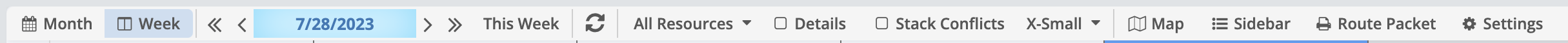 Sidebar: Clicking this button opens and closes the Sidebar on the right, where you can view your Routes and Appointments for the selected day.