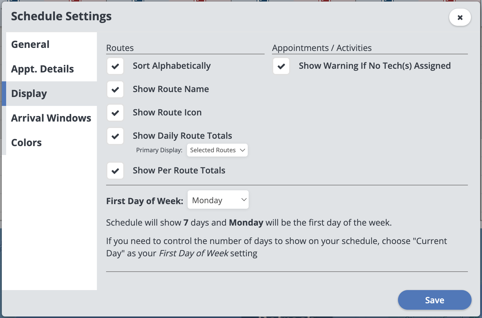 Here you can choose how you want your routes to appear on the schedule.