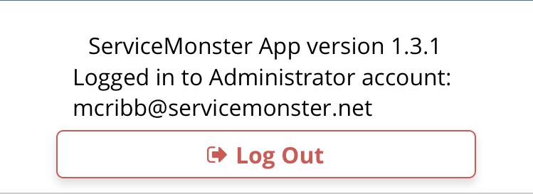 Here you can view what version of the ServiceMonster App you are using, what account you are logged in as, and can log out by clicking “Log Out”