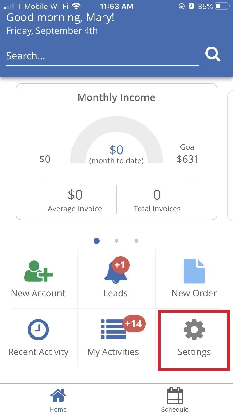To open your settings on mobile, simply click on “Settings” on the home screen.