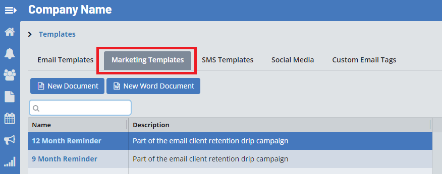 Choose the marketing template you want to use, or create a new template by clicking "New Document". We will use the "3 Month Reminder" for this example.