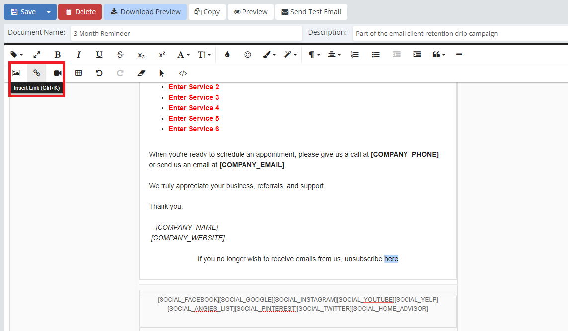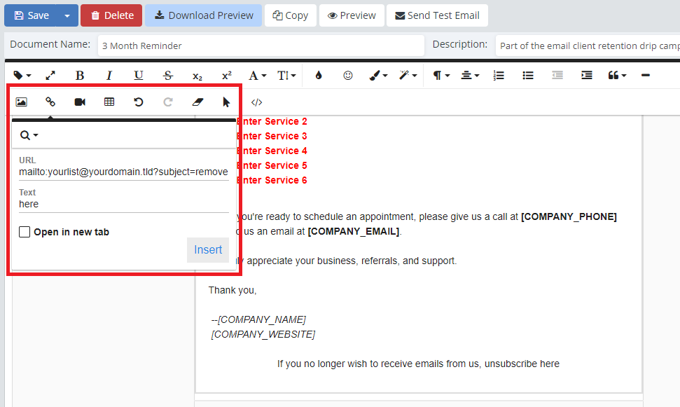If you're set up with SMTP (to utilize your own email) then you will need to add an Unsubscribe Link at the bottom of your emails. It’s actually a law!
