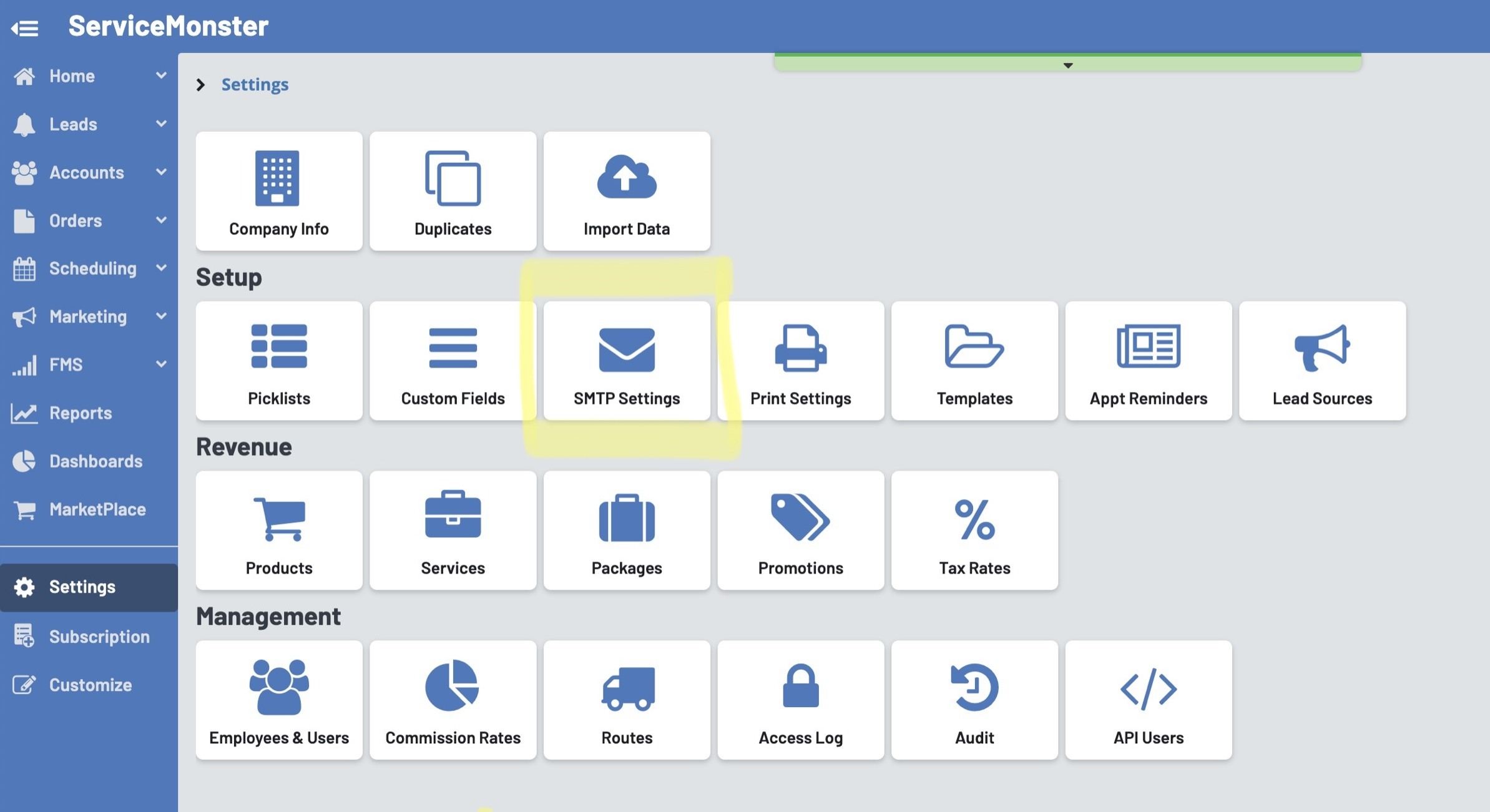 SMTP, which stands for Simple Mail Transfer Protocol, is basically a way of explaining how emails are sent. If you use ServiceMonster to send out invoices or job reminders, SMTP ensures that your business emails are going through your email server, and NOT through ServiceMonster's large email platform.
