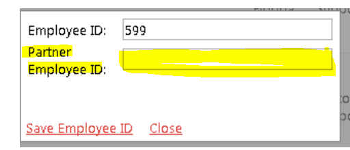 Enter the value recorded from the previous step into the ‘Partner Employee ID’ field of popup window: