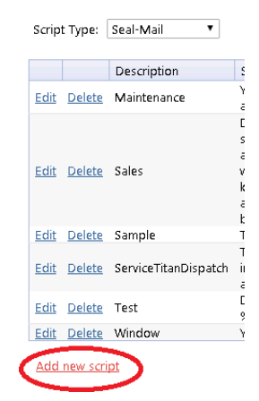 Click ‘Add new script’ at the bottom of the page to create a new Seal Mailscript.