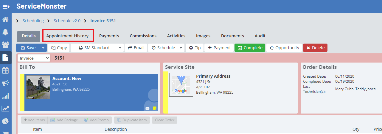 If you have techs doing work in the field and want them to check in and check out of appointments, you can view and edit those time logs from within a few locations on the desktop version of ServiceMonster.