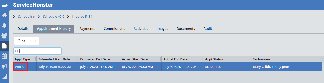 If you click on the appointment type (Work, estimate, pickup, ect) that will open the appointment details page.