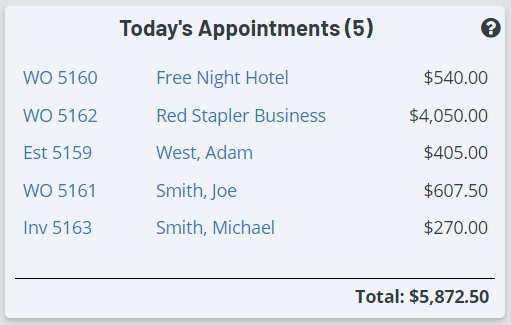 - Why does it total my estimates along with work orders and invoices? This dashboard is not intended to be used for expected daily cash flow. Instead the goal is to give you easy access to a list of your clients that are being serviced today so you can easily make edits as needed and keep up with your technicians workload.