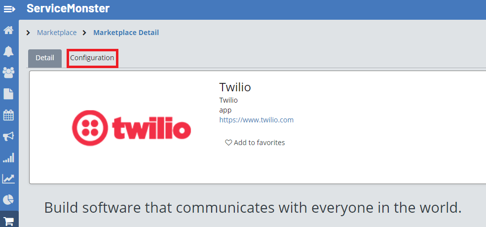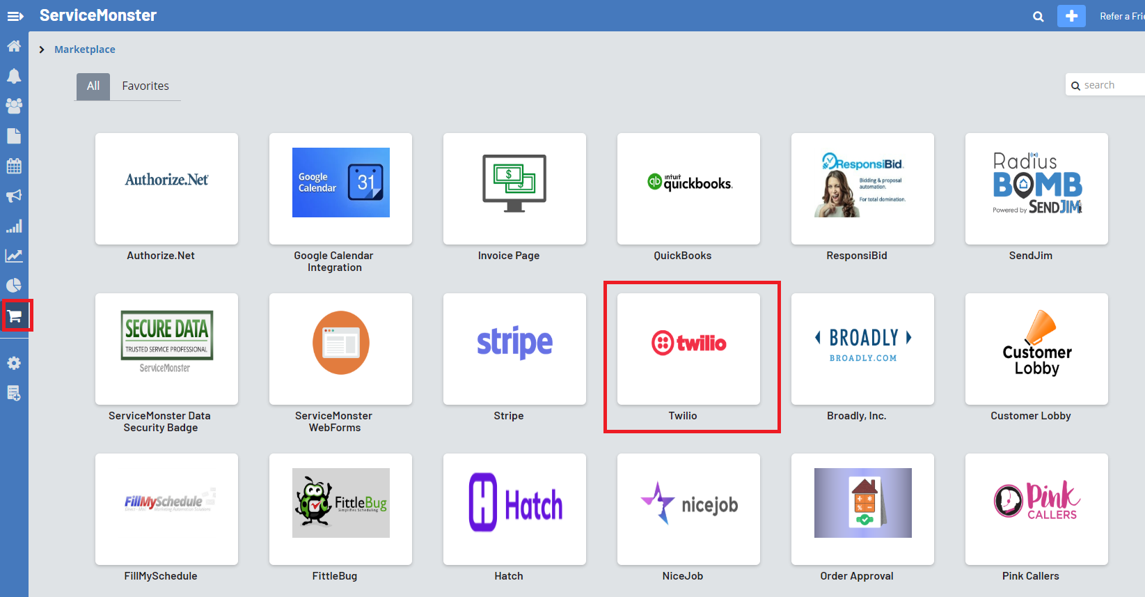 Go to Marketplace (Navigator), and click on the Twilio icon